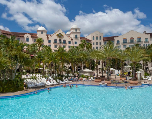The Universal's Hard Rock Hotel is a California mission-style resort located in the heart of Universal Orlando. Guests will enjoy classic rock n roll memorabilia, a lively music-filled pool area with exceptional service and accommodations. A lavish entrance way sets the tone: a magnificent fountain made of 42 bronze Gibson and Fender guitars. From there, the red carpet is figuratively rolled out. Enjoy 19 acres of trademark Loews Hotels service and hospitality. Step outside your room and you're just a short walk or water taxi ride away from all the fun and excitement of Universal Studios, Universal's Islands of Adventure theme parks, plus the dazzling CityWalk entertainment complex. The world-class resort also offers five restaurants and lounges including the nationally acclaimed "Palm Restaurant," "The Kitchen" and "Velvet Bar." One of the coolest venues at the hotel, literally, is the pool, all 12,000 square feet of it. Hanging out here is a must for all guests at the Universal's Hard Rock Hotel. Features include a sand beach, underwater stereo, interactive fountains, a 240 foot long pool slide and more. There is even a collection of cool cabanas for rent that offer video, stocked refrigerators, and ceiling fans. Amid service and personal attention fit for an A-list celebrity you’ll feel like rock ‘n’ roll royalty at Universal's Hard Rock Hotel.